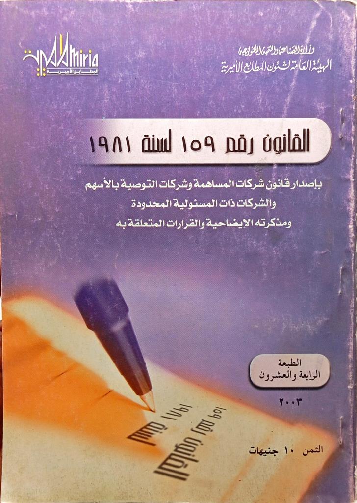 القانون رقم 159 لسنة 1981 بإصدار قانون شركات المساهمة وشركات التوصية بالأسهم والشركات ذات المسئولية المحدودة